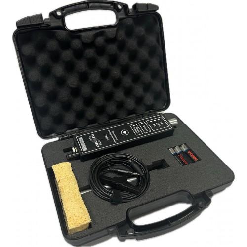 Дефектоскоп электролитический (детектор микроотверстий) ТЭД-3 предназначен для обнаружения дефектов покрытия (трещин, микроотверстий, пористости) в диэлектрических (изоляционных) покрытиях толщиной до 500 мкм по стандарту ASTM/ISO. Подходит для работ на трубопроводах, резервуарах и сталь-конструкциях. Контроль сплошности осуществляется стандартными напряжениями 9В; 67,5В; 90В через губку, смоченную в жидком электролите с отличными проникающими характеристиками.